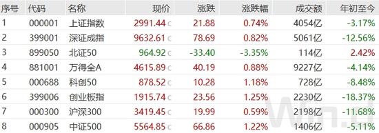截至12月11日收盘,上证指数涨0.74%报收于2991.44点;深成指涨0.82%报收于9632.61点;创业板指涨1.25%报收于1915.74点,万得全A总成交9227亿元。