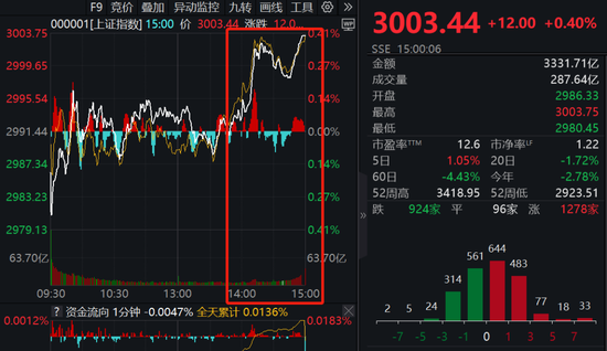 几乎同步的是,大盘指数亦是在最后一个小时内出现大幅拉升,上证指数成功突破3000点,收报3003.44点,涨0.4%。为何多个交易日央企指数ETF涨幅都出现与大盘指数同步的迹象?从指数构成来看,这或许与指数成分股多为市值超千亿元的大盘股有关。