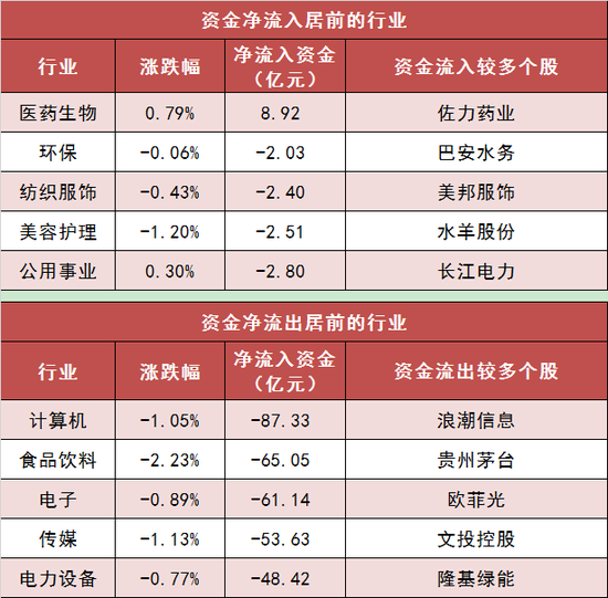 【13日资金路线图】两市主力资金净流出近218亿元 医药生物行业实现净流入