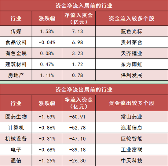 【15日资金路线图】两市主力资金净流出72亿元 传媒等行业实现净流入