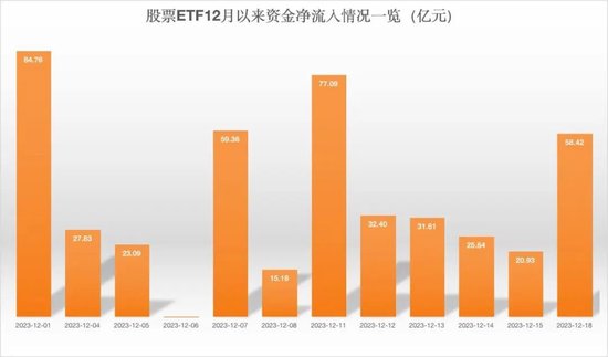 银河证券基金研究中心数据显示,12月18日,全市场股票ETF资金净流入超过58亿元,创下最近5个交易日新高。
