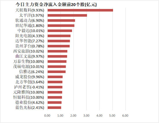 4、天娱数科主力资金净流入5.04亿元居首