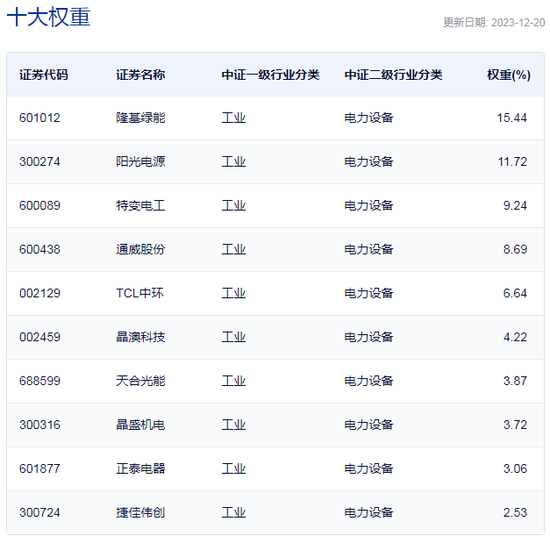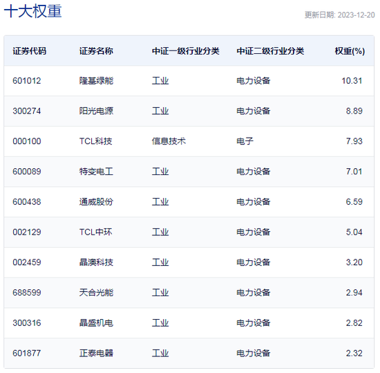 中证光伏产业指数重仓股