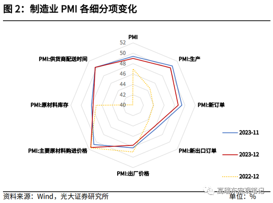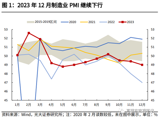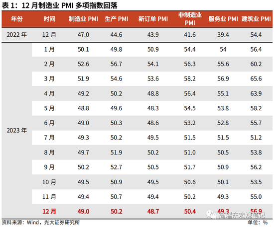 但也应当注意到,12月为部分制造业行业传统淡季,该月PMI回落幅度符合季节性规律,而各项稳增长政策效果正在逐渐显露的过程中,包括12月建筑业、金融业活动明显加快,结合1月制造业PMI历史上平均环比回升明显(2019至2023年1月PMI平均环比回升0.44个百分点),制造业PMI或已处于底部区间。