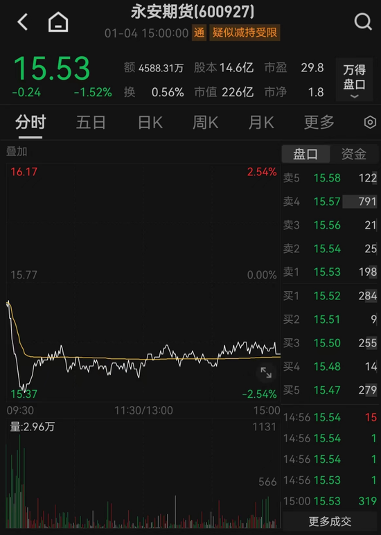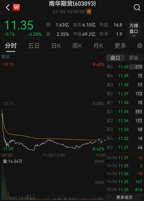 受到相关传闻的冲击,A股市场期货股今日早盘出现大跌,全天走势低迷。截至收盘,南华期货跌幅超过6%,永安期货跌幅达到1.52%。