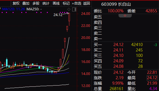 更值得的一提的是,“南方小土豆”硬实力造就大牛股。长白山连拉五个涨停板,大连圣亚连拉四个涨停板。