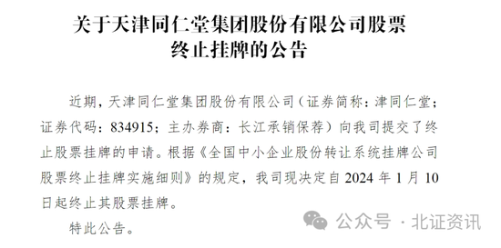 津同仁堂于2015年12月在新三板挂牌,距离其从新三板“撤退”总共有8年。2023年12月5日,公司公告拟申请终止挂牌,原因是“因公司经营发展战略的调整以及长期战略规划的需要,为提高决策和经营效率”,随后,其股票自2023年12月18日起停牌,直至1月9日公告于1月10日起摘牌。