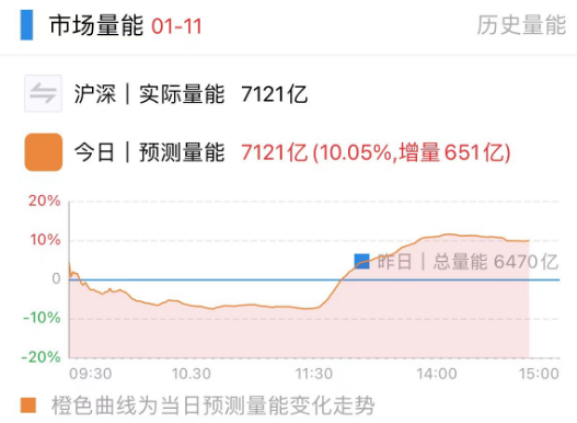 总体上个股涨多跌少,全市场超4400只个股上涨。沪深两市今日成交额7121亿,较上个交易日放量651亿。