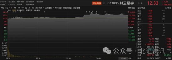 在资深新三板评论人、北京南山投资创始人周运南看来,今天新股云星宇开盘大涨111.66%后一直箱体振荡,午后在北证50指数大涨的同步公司股价突然直线拉升涨至175.16%,触发第一次涨临停,这也是本月北A的第一次涨临停,表明市场还是相对活跃的。