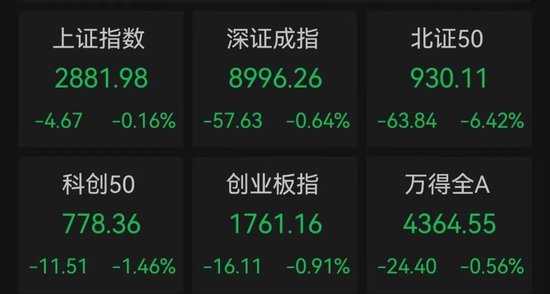 今日,A股主要指数集体收跌,沪指跌0.16%,深成指跌0.64%,创业板指跌0.91%。