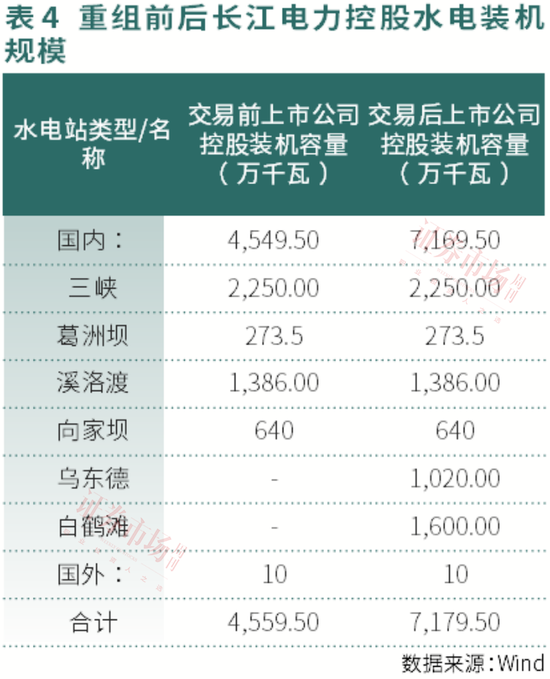 云川公司系乌东德水电站和白鹤滩水电站的投资运营主体,乌东德水电站核定装机容量1020万千瓦,已全部投产;白鹤滩水电站核定装机容量1600万千瓦,已全部投产。目前,长江电力持有云川公司100%股权,其已拥有长江干流6座梯级水电站,控股总装机容量达7179.50万千瓦,占全国水电装机的17.34%,相比重组前增长了57.46%,已成为全球最大的水电上市公司。