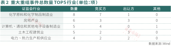 土木工程建筑业也有6项重大重组事件,交易发起方同样是国企。其中,在出让资产方面,地方国企东湖高新出售湖北路桥66%股权、天沃科技出售中机电力80%股权等;在资产收购上,地方国企粤水电定增收购建工集团100%股权,央国企中船科技定增收购中船海装100%股权、中船风电发展88.58%股权、新疆海为100%股权、洛阳双瑞44.64%股权和凌久电气10%股权等。整体看,6个项目的交易总价值超过了450亿元。
