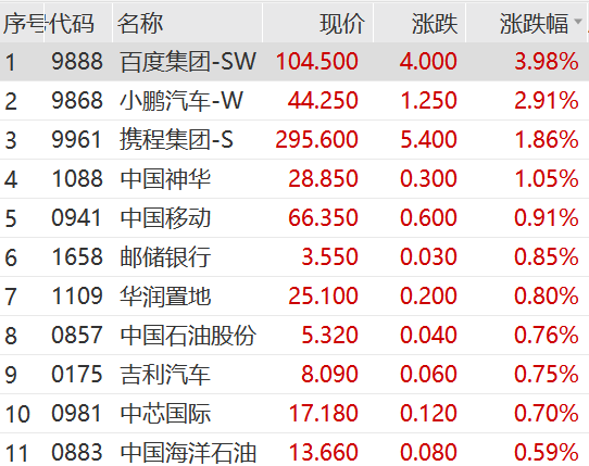 港股方面,早间三大指数均低开超1%:恒生指数跌1.15%,恒生国企指数、恒生科技指数均跌1.01%。开盘后港股市场跌幅有所收窄,百度大涨4%,领涨恒生科技。