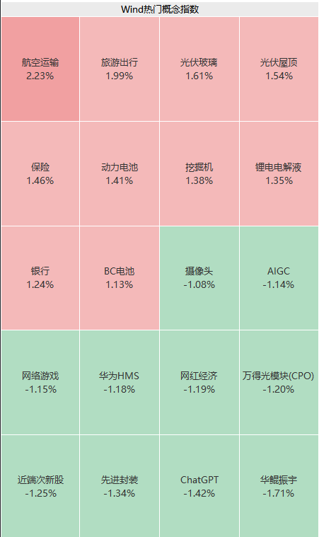 盘面上,上午旅游出行板块热度持续,光伏、电力盘中拉升,大金融走高;传媒股继续回调,AIGC、华鲲振宇、ChatGPT等概念走低。
