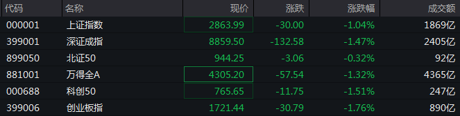 快讯:三大指数午后均跌超1% 两市下跌个股近4500只