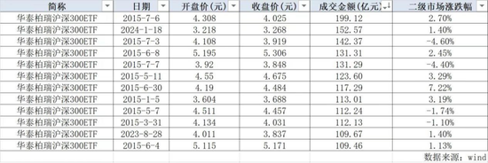 (华泰柏瑞沪深300ETF单日成交额超百亿元明细)