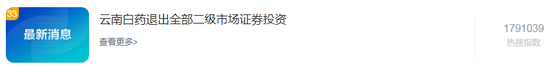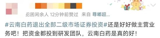 1月18日,“云南白药退出全部二级市场证券投资”的相关话题登上了百度热搜。
