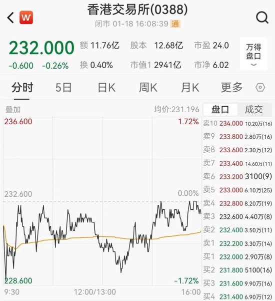 港交所今日微跌0.26%。