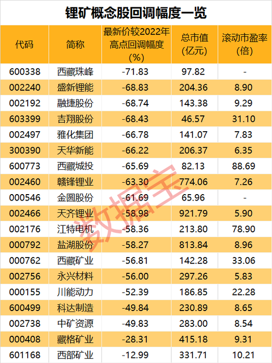 目前锂矿概念股中,永兴材料、天齐锂业、天华新能、赣锋锂业等10余股的市盈率均不足10倍。