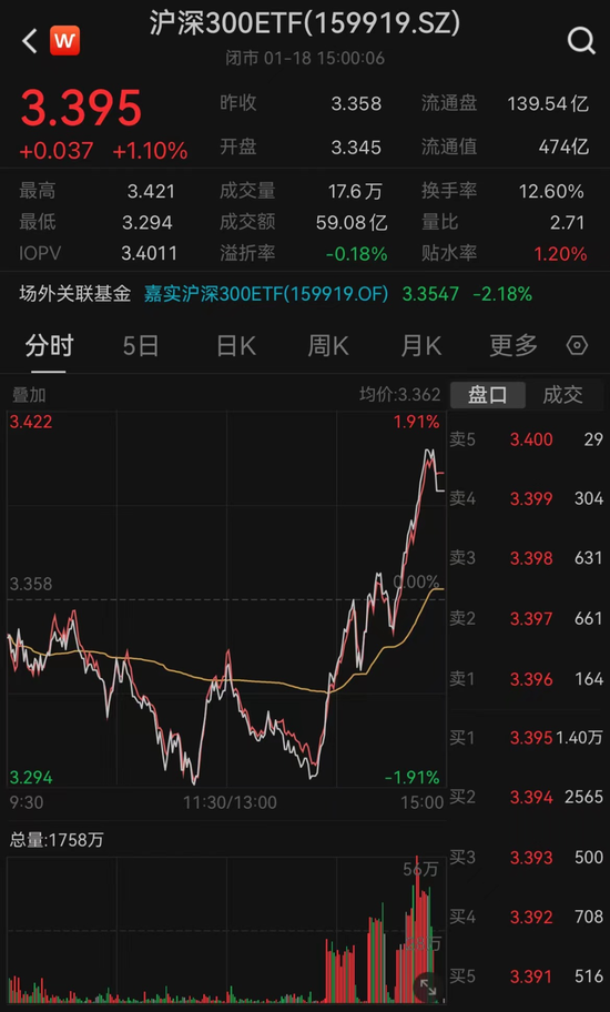 沪深300ETF尾盘再次显著放量,从分时图来看,尾盘出现明显资金介入迹象。