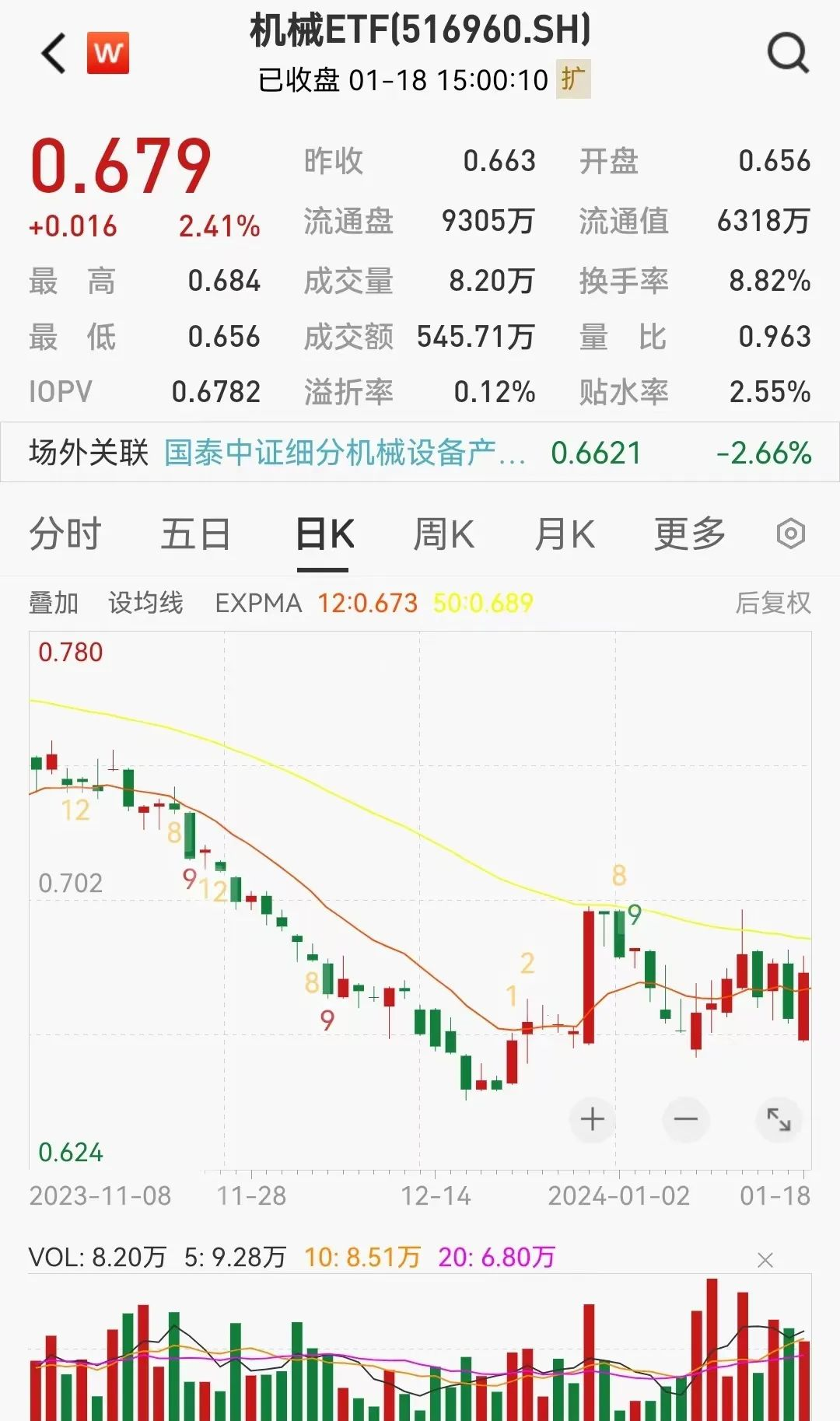 机械板块1月18日受新能源拉动,机械ETF(516960)涨2.41%。