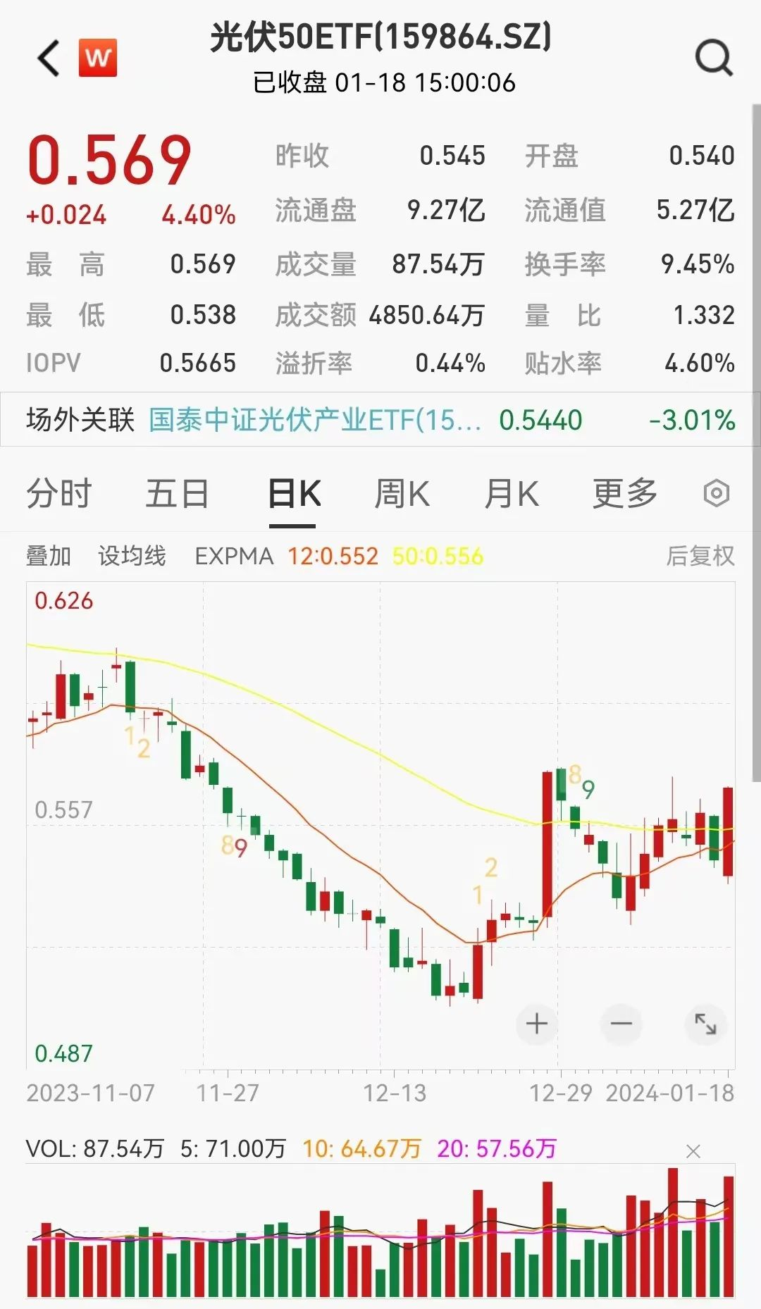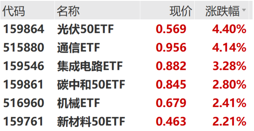 以光伏为首的新能源板块1月18日全天表现亮眼,光伏50ETF(159864)涨4.4%,碳中和50ETF(159861)涨2.8%,涉及中上游制造的机械ETF(516960)、新材料50ETF(159761)也涨超2.2%。