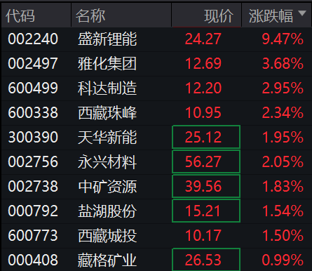 1月19日早盘,锂矿股表现活跃。截至发稿,盛新锂能涨超9%,雅化集团、中矿资源、永兴材料、盐湖股份等跟涨。
