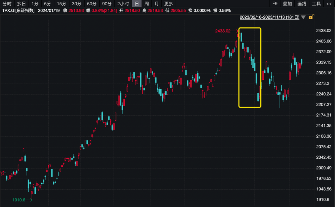 上一次该指标突破“超买”门槛是在2023年9月,随后东证指数一路狂泻9%。