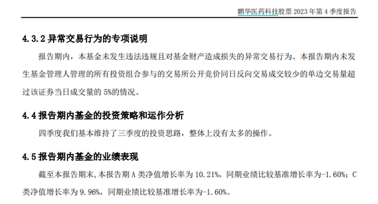例如,鹏华医药科技股票基金经理金笑非在四季报的“投资策略和运作分析”中就只写着:“四季度我们基本维持了三季度的投资思路,整体上没有太多的操作。”对此,有网友认为基金经理是“敷衍”“躺平”,但也有网友表示“业绩还行,可以理解”。