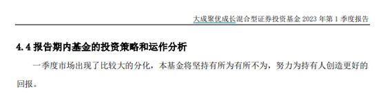 截图自韩创在管基金大成聚优成长混合2023年一季报