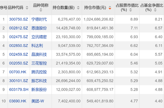 2023年四季度,该基金增持了恩捷股份、科达利、晶澳科技、美团-W,减持了立讯精密、三花智控、新泉股份;腾讯控股、振芯科技新进为前十大重仓股,TCL中环、快手-W则退出了前十大重仓股。