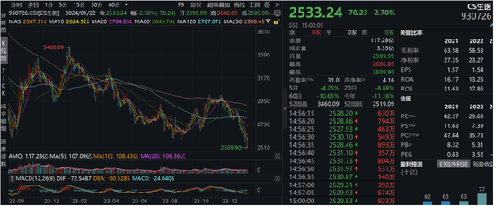 1月22日大盘低开下探后,下午单边下跌,沪指一度下探至2735附近,尾盘略有抬升。全天仅有140只个股上涨,近120股跌停。截至收盘,上证指数跌2.68%报2756.34点,A股全天成交8054.8亿元;北向资金尾盘竞价出现抢筹,全天净买入10.47亿元。