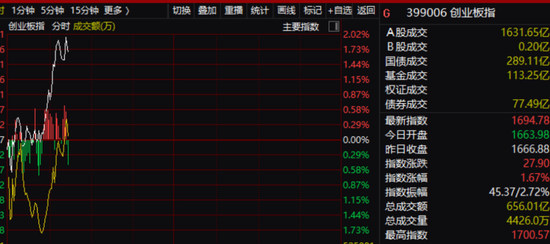 刚刚,股市的大反攻来了!在早盘急速杀跌之后,十点过后,做多资金突然进场,上证指数翻红,早盘一度跌超1%;创业板指劲升2%,阳光电源大涨近8%,锦浪科技、东方日升、帝尔激光、迈为股份等新能源权重股全线爆发。