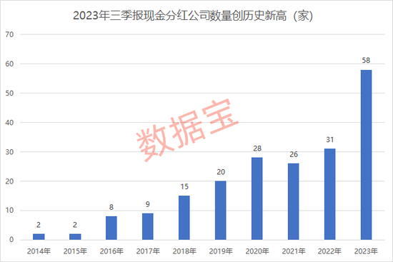 第三,上市公司分红次数增加。近年来,除年报分红外,上市公司在半年报、三季报等时间点亦增加了分红次数。统计数据显示,2023年半年报共有185家上市公司进行现金分红,相比2022年半年报增加约50%;2023年三季报共有58家上市公司分红,超过50家,为历史上首次。