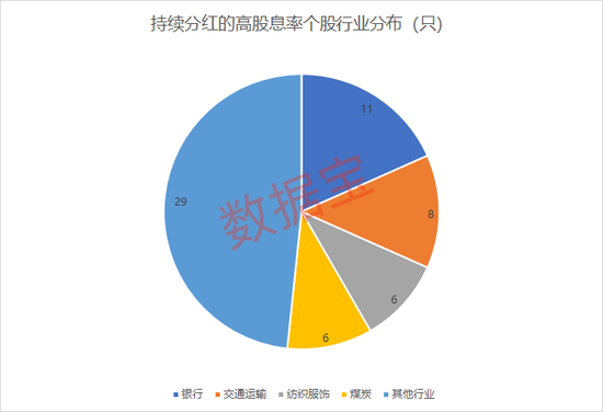 证券时报·数据宝统计,A股市场连续10年分红且近3年股息率均值在5%以上的个股共计60只,主要分布在银行、交通运输、纺织服饰、煤炭四大行业,均有5只以上个股上榜。其中,冀中能源、中国神华近3年股息率均值居前,分别为14.5%、10.19%。