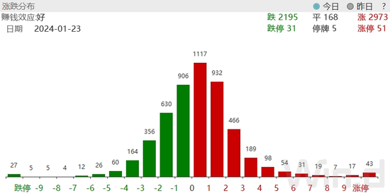 1月23日,万得全A反弹0.79%,成交额为7132亿元,较前一交易日大幅缩量。从市场走势来看,今日低开高走小幅上涨,盘中再度创出近期新低,在连续下跌后缩量反弹,市场恐慌情绪有所修复,短线有望维持强势。