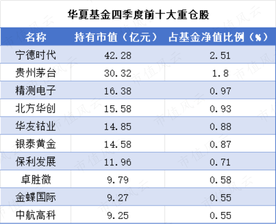 华夏基金四季度前两大重仓股仍为宁德时代、贵州茅台。