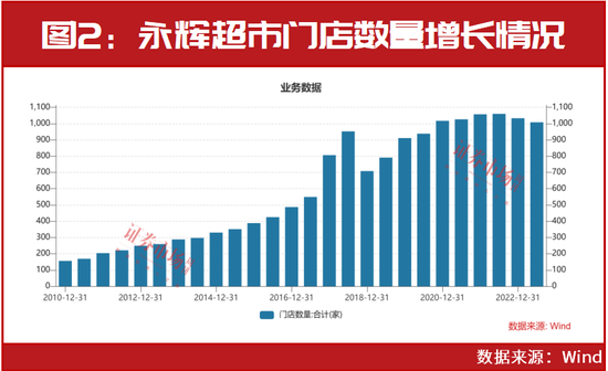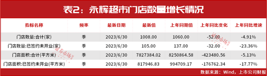 据永辉超市财报,截至2023年半年报,公司门店数量为1008家,同比减少52家。(见图2、表2)