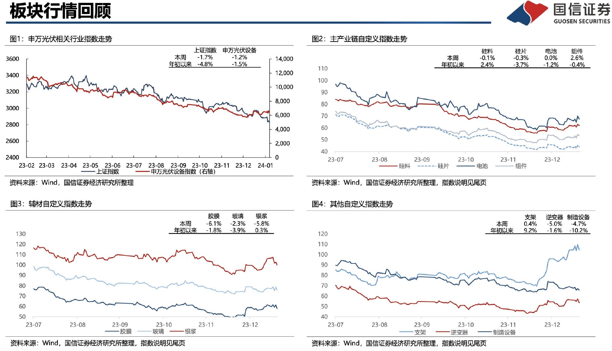 对于光伏板块此轮反弹,行业分析认为主因是近期海外光伏库存去化显著。长城证券于夕朦等人在1月3日研报中表示,预计2024年中国光伏新增装机增速15%左右。海外市场需求有望充分受组件价格下降所刺激,预计新增装机465-485GW,同比增长约20%。华福证券1月8日研报还提到,中美欧市场三重发力的同时新兴市场起量在即,预计全球24年全球新增光伏装机为470GW,同比增速达24%,需求仍有韧性。