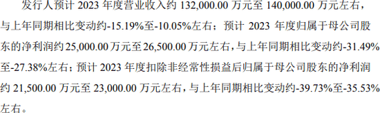 上海合晶招股书称,预计公司2023年全年实现净利润2.5亿元至2.65亿元,同比变动-31.49%至-27.38%。