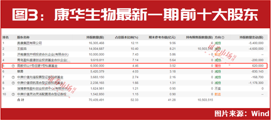据上市公司公告显示,康华生物于近期披露了截至1月22日的最新一期前十大股东名单,相比2023年三季度末,公司前十大股东多数发生了持股变动。其中,6位减持,2位新进,1位增持,冯柳旗下的高毅邻山1号远望基金就是进行增持的那位大股东,其持股数量增加了62万股(见图3)。结合康华生物四季度以来(至1月22日)71.26元/股的成交均价测算,冯柳此次加仓或斥资约4418.12万元。