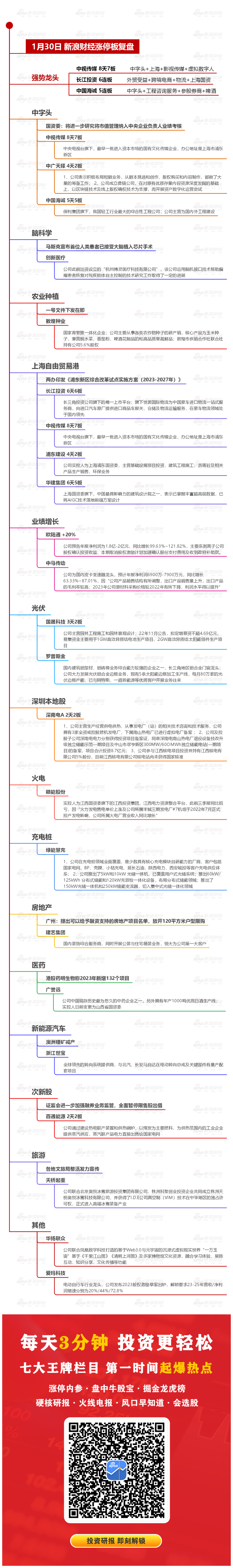 1月30日沪深两市涨停分析:视传媒录得8天7板 长江投资6连板