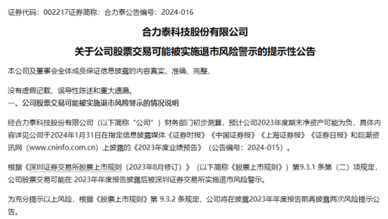 公司表示,报告期内,公司所处的中小尺寸显示领域中触显和光电类产品均价低于去年同期,手机端业务的市场订单不达预期,导致公司2023年销售额和毛利率同比下降,公司总体毛利率水平未有明显恢复。经初步测算,预计公司2023年度期末净资产可能为负,公司股票交易可能在2023年年度报告披露后被深交所实施退市风险警示。