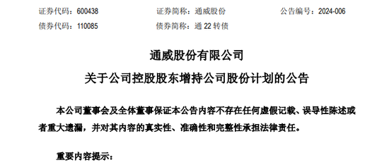 据通威股份公告,控股股东通威集团有限公司基于对公司发展前景的坚定信心以及对公司长期投资价值的认可,拟自本次增持计划公告之日起12个月内,通过上海证券交易所交易系统允许的方式增持本公司股份不低于10亿元,不超过20亿元,且合计增持比例不超过公司总股本的2%。本次增持计划不设定价格区间。