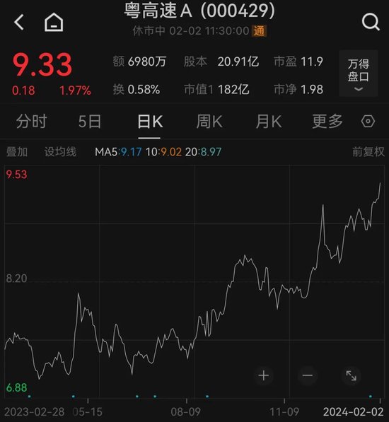 因高股息开始受关注的公路股继续发力,山西路桥涨停,山东高速盘中一度涨超4%,创历史新高,宁沪高速、粤高速A双双创出新高。