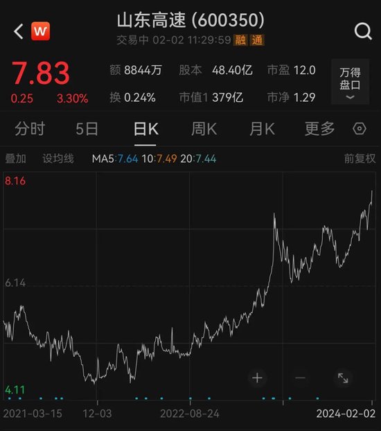 2月2日早盘,因高股息开始受关注的公路股继续发力,山西路桥涨停,山东高速盘中一度涨超4%,创下历史新高。