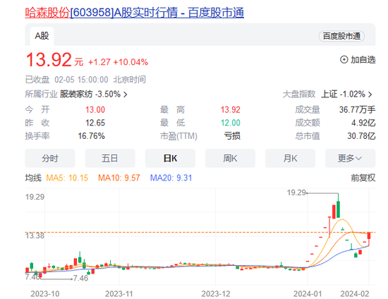 值得注意的是,哈森股份近日大幅波动,1月16日至24日连续7个交易日涨停,股价接近翻倍,随后1月25日—30日又连续5日跌停,2月1日以来至今再次斩获3连板。