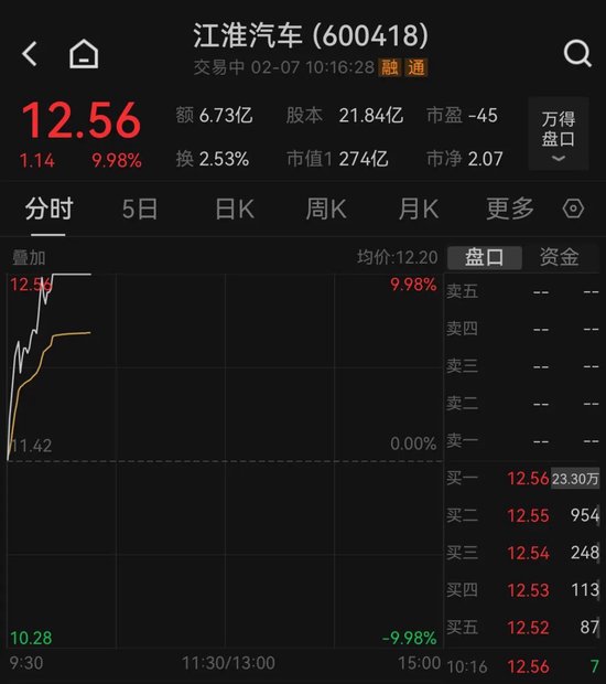 2月7日早盘,赛力斯、江淮汽车双双涨停。赛力斯重返千亿市值。