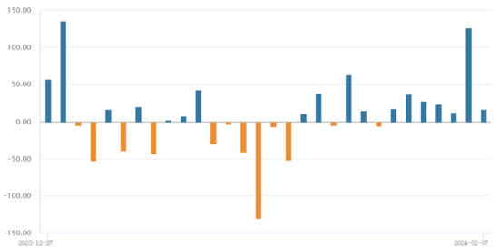 A股主要指数2月7日早盘冲高,午后走势震荡,截至收盘,沪指涨1.44%,深证成指涨2.93%,创业板指涨2.37%。全天成交1.02万亿元,为2024年首个成交额超1万亿元的交易日,北上资金净买入16.84亿元,已连续7个交易日净买入。盘面上看,疫苗、军工、汽车等板块涨幅居前,微盘股、短剧题材等概念继续下挫。