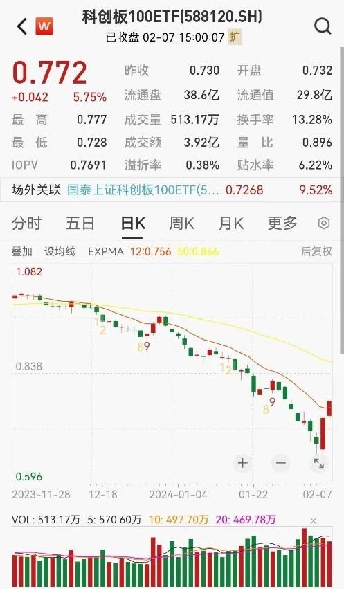 2月7日A股延续反弹趋势,科创板100ETF(588120)再度领跑市场,盘中涨超6%。科创板100指数具有专精特新和中小盘成长风格,因此反弹力度相比其他指数更高。